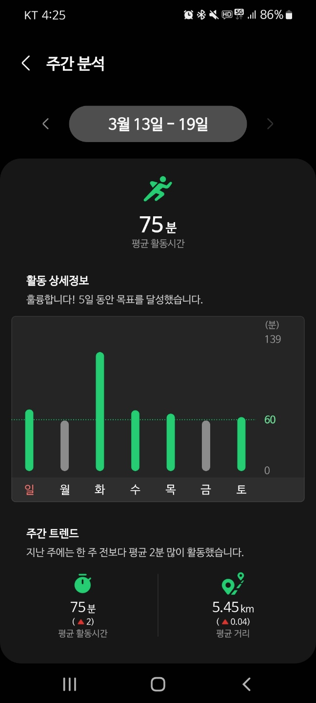 이번 주의 데일리 일지를 보며 한 주를 돌아본다. 다행히 저번주보다는 상세하게 하루를 기록해놔서, 이번주의 일들을 바로바로 복기할 수 있었다. 7일 컨디션 평균 3점 / 평균 일 활동 시간 75분, 평균 취침 시간 7시간. 개인적인 루틴은 딱 평균에 잘 맞게 지내온 것 같다.