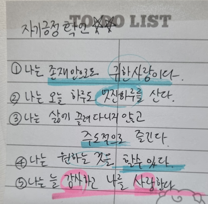 <하루 10분 내 인생의 재발견>은 정말 주옥같은 챕터가 많다. 거의 매 회차 주제를 하이라이트하고있는데, 그 중 가장 기억에 남은 몇가지만 공유하면 ...